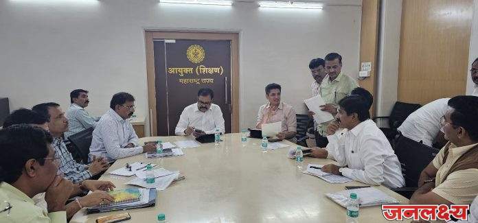 पुण्यातील शिक्षण आयुक्तांच्या कार्यालयात पार पडलेल्या या बैठकीत शिक्षण आयुक्त सुरज मांढरे, माध्यमिक विभागाचे शिक्षण संचालक संपत सुर्यवंशी, प्राथमिक विभागाचे उपसंचालक कुलाळ, पुणे विभागाचे शिक्षण उपसंचालक प्रवीण अहिरे आणि इतर अधिकारी उपस्थित होते.