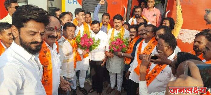 दरम्यान, आज रेल्वेने उन्मेष पाटील व करण पवार हे पक्षाचे जिल्हा संपर्क प्रमुख संजय सावंत आणि सहकार्यांसह रेल्वेने जळगाव येथे दाखल झाले. याआधी पाचोरा रेल्वे स्थानकावर ट्रेन थांबली असतांना स्थानिक पदाधिकार्यांनी त्यांचे अतिशय जल्लोषात स्वागत केले. याप्रसंगी जोरदार घोषणाबाजीने संपूर्ण फलाटासह रेल्वे स्थानक दुमदुमल्याचे दिसून आले. नरेंद्रसिंगदादा सुर्यवंशी आणि राजू भाऊ काळे यांनी पुष्पगुच्छ देऊन उन्मेषदादा आणि करणदादा यांचे स्वागत केले.