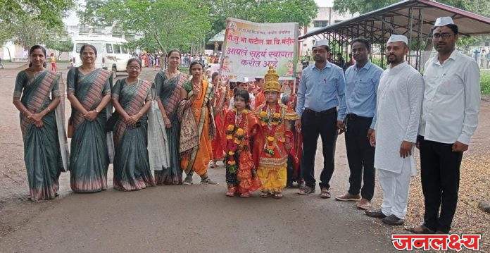 पाचोरा तालुका सहकारी शिक्षण संस्था संचलित श्री. सु.भा. पाटील प्राथमिक विद्या मंदिराची जय-जय राम-कृष्ण हरी,ज्ञानबा-तुकाराम,जय हरी विठ्ठल, झाडे लावा झाडे जगवा, शिकलेली आई घरादाराला पुढे नेई च्या जयघोषात आषाढी एकादशीनिमित्त “आनंदवारी”🚩,जागतिक साक्षरता दिन दिनानिमित्त “साक्षरता दिंडी”📔 व पर्यावरणाचे महत्त्व पटवून देण्यासाठी 🌱”वृक्षदिंडी”🌴 काढण्यात आली. मुख्य इमारतीतील सकाळ सत्र व दुपार सत्राची दिंडी देशमुख वाडी,छत्रपती शिवाजी महाराज चौक,जामनेर रोड, सोनार गल्ली,गांधी चौक तर भडगाव रोड विभागातील दिंडी साईनगर, एमआयडीसी कॉलनी,आप्पासो.ओं.ना.वाघ नगर, कालिका नगर,भास्कर नगर,गाडगेबाबा नगर, भडगाव रोड ते शाळा अशी संपन्न झाली. शालेय समिती चेअरमन बापूसो.जगदीश पंडितराव सोनार व सौ. जयश्रीताई सोनार यांच्या हस्ते बाल विठ्ठल-रुक्मिणीचे पूजन करून दिंडीचे स्वागत करण्यात आले. शाळेतील विद्यार्थ्यांनी विठ्ठल- रुक्मिणीच्या तसेच इतर महान संतांच्या व वारकरीच्या वेषात येऊन दिंडीची शोभा वाढवली. विद्यार्थिनीनी डोक्यावर तुळस व वृक्षाची रोपे घेऊन पर्यावरण वाचवा असा संदेश दिला.रॅलीततील साक्षरतेविषयीचे व पर्यावरणाविषयीच्या बॅनरने सर्वांचेच लक्ष वेधून घेतले होते. दिंडीचे विविध ठिकाणी मोठ्या उत्साहात स्वागत करण्यात आले. तदनंतर बाल वारकऱ्यांनी शाळेच्या मैदानावर सुंदर असा रिंगण सोहळा पार पाडला. विद्यार्थी व शिक्षकांनी फुगडी खेळून दिंडी सोहळ्याचा आनंद घेतला. विद्यार्थ्यांना प्रसाद रुपी गोड बिस्किटांचे वाटप करण्यात आले. दिंडीस पालकांचा देखील उदंड प्रतिसाद लाभला. प्रसंगी शाळेच्या मुख्याध्यापिका श्रीमती.उज्वला साळुंखे मॅडम उपस्थित होत्या.दिंडीच्या यशस्वी आयोजनासाठी सर्व शिक्षक- शिक्षकेतर कर्मचारी यांचे सहकार्य लाभले.