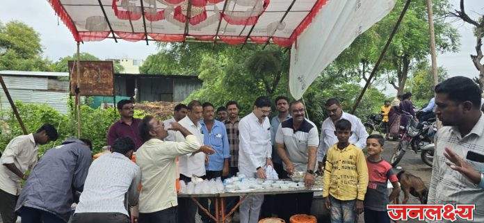पाचोरा येथील दिलीपभाऊ वाघ युवा फाउंडेशनचे अध्यक्ष माजी नगरसेवक दादासाहेब भूषण वाघ यांच्यातर्फे पाचोरा जळगाव चौफुली, वरखेडी व पिंपळगाव हरेश्वर येथे फराळ वाटपाचा कार्यक्रम पाचोरा येथील युवा तरुण कार्यकर्ता पाचोरा शहरात सर्वांशी मैत्री जपणारा राजकारणातील अजातशत्रू असणारा श्री भूषण वाघ माजी नगरसेवक यांनी दिलीप भाऊ वाघ युवा फाउंडेशनची संस्था स्थापन करून त्या संस्थेमार्फत अनेक चांगले उपक्रम राबवलेले असून गोरगरिबांना मदत शालेय विद्यार्थी विद्यार्थिनींना सहकार्याची भावना तसेच त्यांनी आज रोजी आषाढी एकादशी निमित्त आपल्या दिलीपभाऊ वाघ युवा फाउंडेशन मार्फत पाचोरा, वरखेडी व पिंपळगाव हरेश्वर येथे भक्तगणांना फराळ व केळी वाटप केली यावेळेस श्री दिलीप भाऊ वाघ युवा फाउंडेशन चे अध्यक्ष भूषण दादा वाघ, भगवान मिस्त्री,विनोद पाटील, अँड अविनाश सुतार,बंडू लोहार,सुनील राठोड,सुदर्शन सोनवणे,राजू मिस्त्री,दिलीप पाटील, वरखेडी येथे एन सी तात्या पाटील,दिनेश पाटील,फकीरा गांगे,अविनाश पाटील,संजय कर्नल,भीमा पाटील,उत्तम पाटील, महारू पाटील,हर्षल पाटील,किरण देवरे पिंपळगाव. हरेश्र्वर येथे संतोष कुटे,प्रशांत माळी,प्रवीण गुजर,अशोक वाघे,तुषार काळे ,राजू निकम,प्रशांत नैनाव,पंडित तेली,दिलीप जैन,मौजू शेठ जैन व आदी सर्व कार्यकर्ते व पदाधिकारी उपस्थित होते.