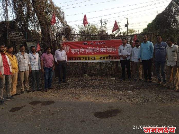 तसेच महाराष्ट्र स्टेट ईलेक्ट्रीसिटी वर्कर्स फेडरेशन संघटनेचे केंद्रीय नेतृत्वाने दिलेल्या निर्देशानुसार तिन्ही कंपन्या कडे कामगार कर्मचारी अभियंता अधिकारी यांच्या प्रलंबित प्रश्नाकडे लक्ष वेधून निर्णय घेण्यासाठी आज दि २१ फेब्रुवारी रोजी संध्याकाळी सहा वाजता जळगाव येथे सर्कल कार्यालय समोर द्वार सभा घेऊन निदर्शने करण्यात आली.सदर सभेस कॉ विरेंद्रसिंग पाटील यांनी विस्तृतपणे मार्गदर्शन करताना प्रशासन च्या चालढकल धोरणाचा निषेध नोंदविला.२७ फेब्रुवारी रोजी परिमंडळ कार्यालय येथे द्वार सभा व निदर्शने दुपारी १३.३० वाजता करण्यात येणार आहे असे एकमताने ठरले.सदर सभेत सर्कल सेक्रेटरी कॉ जितेंद्र अस्वार यांनी संबोधित केले.सभेत कॉ प्रभाकर महाजन विभागीय प्रमुख जळगाव,कॉ हेमंत बारी,कॉ समाधान पाटील,कॉ.सचिन फड,कॉ.नितेंद्र गिरासे,कॉ अनिल ईशी ,कॉ गणेश सोनार,कॉ शरद बारी कॉ नागेश पारधी,कॉ गिरीश बर्हाटे ,कॉ सतीश भोळे , कॉ विकास तायडे यांनी सहभाग घेतला.