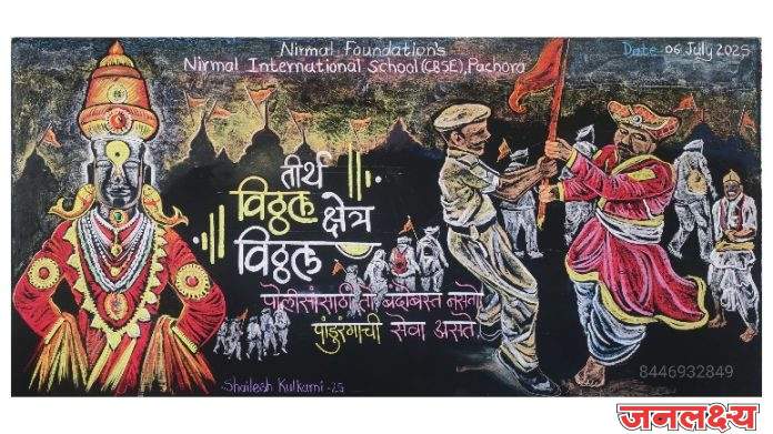 निर्मल इंटरनॅशनल स्कूल पाचोरा येथील कला शिक्षक शैलेश कुलकर्णी यांनी आषाढी एकादशी निमित्त फलक रेखाटन