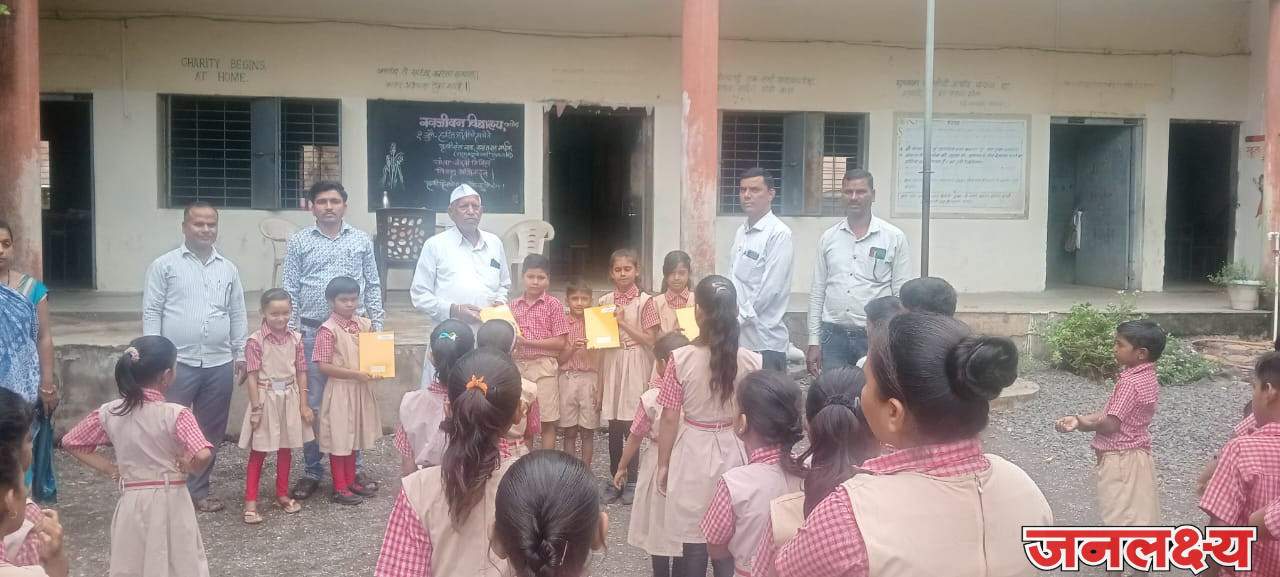 पाचोरा नवजीवन परिवाराचे आधारस्तंभ श्री.उत्तम भाऊ राठोड यांच्या मार्फत व नविन प्राथमिक शाळेतील मुख्याध्यापक श्री. सुनिल पाटील(सर) यांच्याकडून दिलेल्या गरीब विद्यार्थ्यांसाठी दिलेल्या वहीचे मोफत शैक्षणिक साहित्याचे वाटप करण्यात आले…. यासाठी कै.ताराचंद नाईक शिक्षण प्रसारक मंडळ संचलित, आंबेवडगाव चेअरमन श्री. दरबार भाऊ राठोड व संचालक राजू भाऊ राठोड तसेच शाळेतील शिक्षक यांच्याकडून मागास विद्यार्थी संचालक मंडळाचे अध्यक्ष व संचालक यांचे मनापासून आभार.