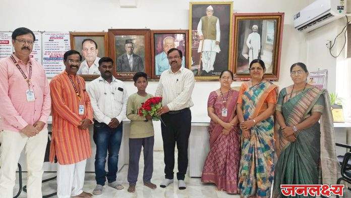 त्याचे शाळेचे मुख्याध्यापक एन. आर.पाटील .यांनी पुष्पगुच्छ देऊन स्वागत केले तर उप मुख्याध्यापक आर. एल. पाटील. पर्यवेक्षिका अंजली गोहिल,पर्यवेक्षक आर. बी. तडवी,आर बी बांठिया ज्येष्ठ शिक्षक पी. एम. पाटील, ज्येष्ठ शिक्षिका संगीता वाघ यांनी अभिनंदन केले सोबत विद्यार्थ्यांचे पालक लक्ष्मण शिंदे उपस्थित होते. त्याला शिक्षिका व्ही.पी जगताप यांचे मार्गदर्शन लाभले.