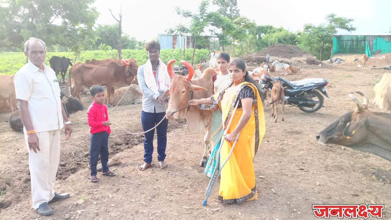 पंतप्रधान मोदींच्या वाढदिवसानिमित्त अंजनाई गोशाळेत वृक्षारोपण व गोपूजन
