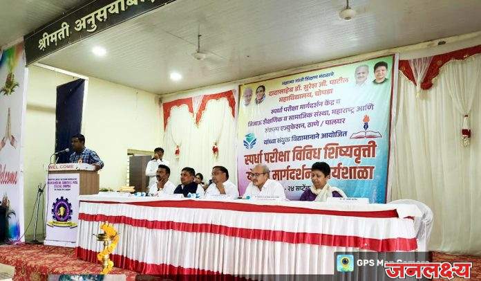 चोपडा: येथील महात्मा गांधी शिक्षण मंडळाचे दादासाहेब डॉ. सुरेश जी. पाटील महाविद्यालय तसेच स्पर्धा परीक्षा मार्गदर्शन केंद्र व जिजाऊ शैक्षणिक, सामाजिक संस्था महाराष्ट्र आणि संकल्प एज्युकेशन पालघर ठाणे यांच्या संयुक्त विद्यमाने आयोजित ‘स्पर्धा परीक्षा विविध शिष्यवृत्ती योजना मार्गदर्शन कार्यशाळेचे’ आयोजन करण्यात आले होते. या कार्यशाळेचे उदघाटन मराठा सेवा समितीचे विभागीय अध्यक्ष रामदादा पवार यांच्या हस्ते प्रतिमेला माल्यार्पण करून तसेच दीपप्रज्वलन करून करण्यात आले.