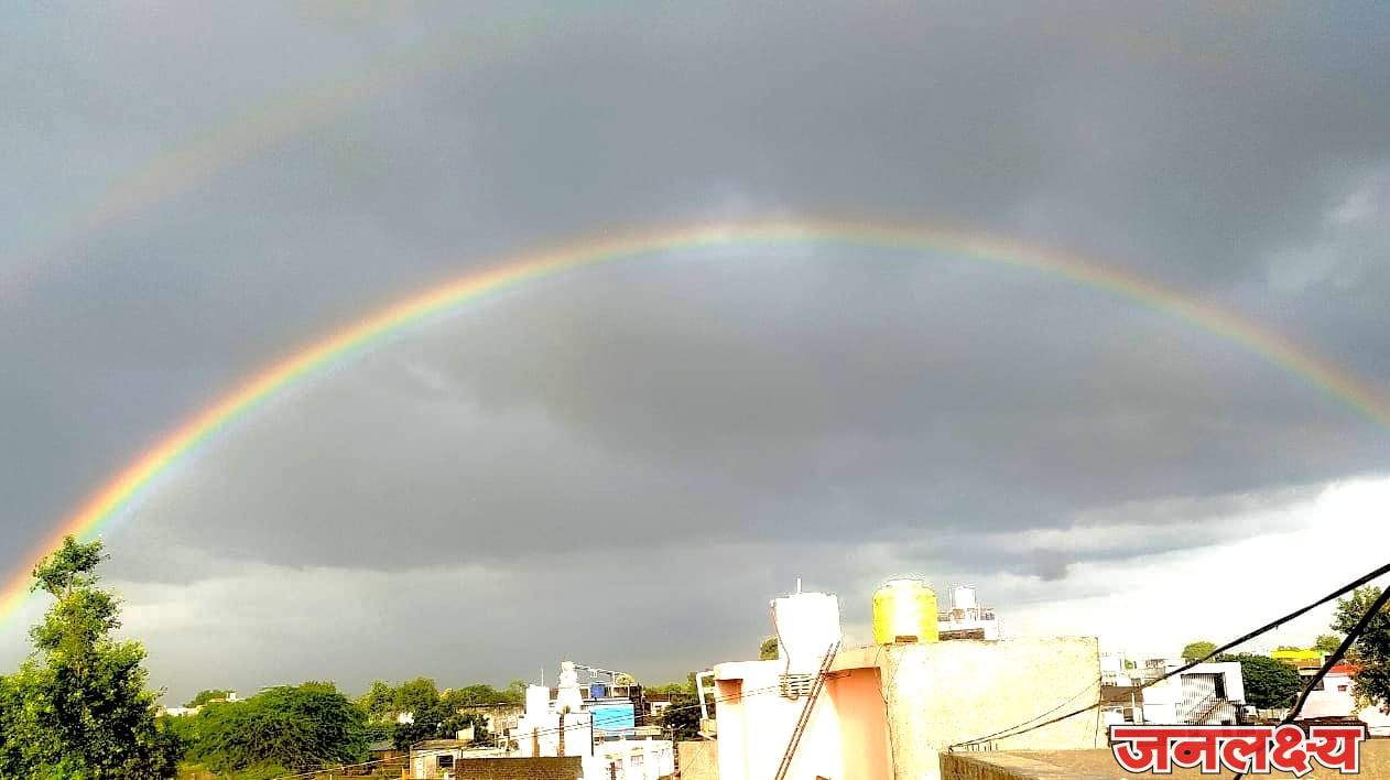 मोरपंखी रंगात नटलेली निसर्गाची किमया; नवरात्रीच्या आठव्या दिवशी इंद्रधनुष्याचे अद्भुत दर्शन