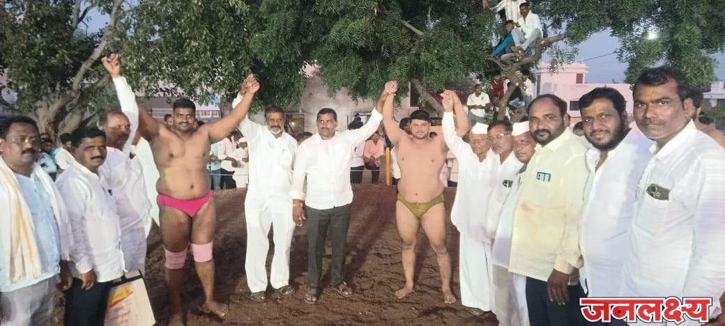(सुनिल नजन “चिफब्युरो” स्पेशल क्राईम रिपोर्टर अहिल्यानगर जिल्हा) संपूर्ण महाराष्ट्रात प्रसिद्ध असलेल्या अहिल्यानगर जिल्ह्यातील पाथर्डी तालुक्यातील मीरी येथिल विरभद्र यात्रेतील कुस्त्यांच्या फडातील शेवटची आकरा हजाराची कुस्ती ही अहिल्यानगर जिल्ह्यातील राहुरी तालुक्यातील ब्राह्मणी येथील हिंद केसरी पैलवान अनिल ब्राह्मणे विरुद्ध आणि मीरी येथिल पैलवान दत्ता मच्छिंद्र शिंपनकर यांच्या मध्ये झाली. अटीतटीच्या लढतीत पराभव हा कोणाचाच झाला नाही.शेवटी आखाड्यातील पंचांनी ही कुस्ती बरोबरीत सोडवली.दोघांनाही हे बक्षीस विभागून देण्यात आले. या कुस्ती फडात महिला कुस्तीपटूंच्या ही इनामी कुस्त्या झाल्या.कल्याणी विरुद्ध गीता रजपूत यांच्यात दोन हजार रुपयांची कुस्ती झाली.गीता रजपूत हीने कल्याणीचा पराभव केला.कुस्त्या सोडवण्यासाठी जेष्ठ पैलवान मच्छिंद्र शिंपनकर यांनी विशेष सहकार्य केले. सुत्रसंचलन जगदीश सोलाट यांनी केले.यात्रा कमेटीच्या वतीने नवीन कुस्ती आखाडा तयार करून राज्यातील नामवंत पैलवानांना आमंत्रित करून कुस्त्यांचा हा जंगी हंगामा भरवण्यात आला होता.राहुरीचे हिंद केसरी पुरस्कार मिळवलेले पैलवान गुलाब बर्डे यांचा ही यात्रा कमेटीच्या वतीने सन्मान करण्यात आला.या फडात जिल्ह्यातील घोटण,राहुरी, शेवगाव,नेवासा, पाथर्डी,सोनई, आष्टी,परभणी नांदेड,कर्नाटक येथिल अनेक नामवंत पैलवानांनी हजेरी लावून आपले डाव प्रतिडाव दाखवले होते.विरभद्र मंदिराच्या प्रांगणातील नवीन आखाड्यात हा हंगामा भरवण्यात आला होता.सुरवातीस यात्रा कमिटी सह बिरोबा भक्त सिताराम बाळाजी भगत यांच्या हस्ते नारळ फोडून या हगाम्याची सुरूवात करण्यात आली.या वर्षी तिन दिवस यात्रेचे आयोजन करण्यात आले होते.पहिल्या दिवशी छबिना मिरवणूक,दुसऱ्या दिवशी होईक, आणि तिसऱ्या दिवशी कुस्त्यांचा जंगी हंगामा या पध्दतीने तिनं दिवस यात्रा कमेटीच्या वतीने नियोजन करण्यात आले होते.यात्रे निमित्ताने विरभद्र मंदिरावर आकर्षक रोषणाई करण्यात आली होती.