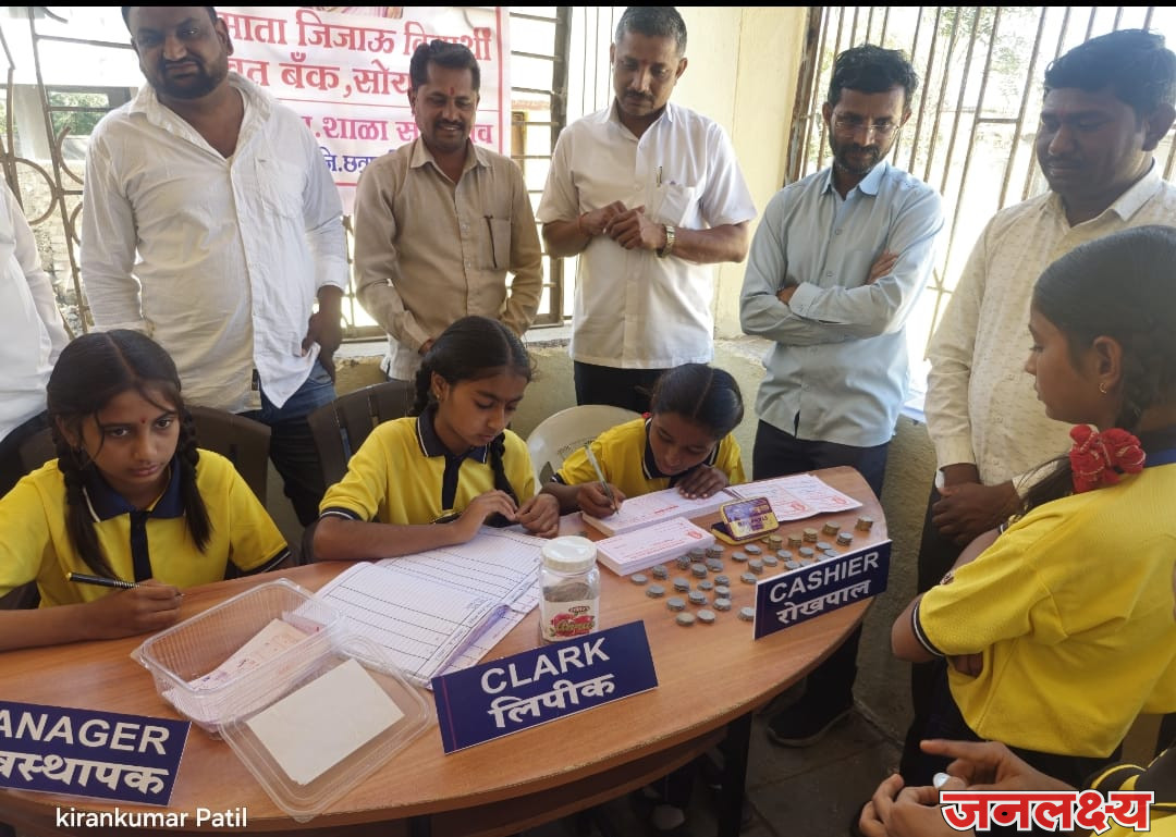 सोयगाव : विद्यार्थ्यांना केवळ सैद्धांतिक नव्हे तर प्रत्यक्ष व्यवहारिक ज्ञान मिळावे, या उद्देशाने जिल्हा परिषद केंद्रीय प्राथमिक शाळा, सोयगाव येथे ‘राजमाता जिजाऊ विद्यार्थी बचत बँक’ हा अभिनव उपक्रम सुरू करण्यात आला. दशसूत्री उपक्रमांतर्गत जिल्हाधिकारी मा. दिलीप स्वामी यांच्या प्रेरणेने तसेच गटशिक्षणाधिकारी सचिन शिंदे व केंद्र प्रमुख फिरोज तडवी यांच्या मार्गदर्शनाखाली हा उपक्रम राबविण्यात येत आहे.