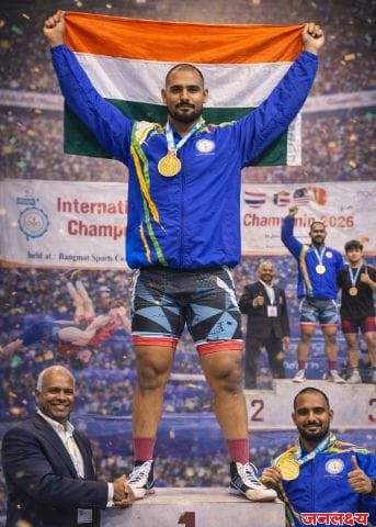 पाचोरा – बँकॉक, थायलंड येथे इंटरनॅशनल ऑलिम्पिक स्पोर्ट ऑर्गनायझेशन कमिटीच्या मान्यतेने आयोजित इंटरनॅशनल रेसलिंग चॅम्पियनशिप 2026 स्पर्धेत खान्देशच्या मातीत घडलेल्या पैलवानाने आंतरराष्ट्रीय आखाड्यावर भारताचा झेंडा अभिमानाने फडकवला आहे. मलेशिया, थायलंड, श्रीलंका आणि भारत या देशांच्या सहभागाने पार पडलेल्या या प्रतिष्ठेच्या स्पर्धेत भारताच्या संघाने मिशन ओलंपिक गेम्स असोसिएशन इंडिया यांच्या वतीने सहभाग नोंदवला होता. बेळगाव येथे झालेल्या अखिल भारतीय कुस्ती स्पर्धेतून निवड झालेल्या खेळाडूंमधून १२५ किलो वजनगटासाठी जळगाव जिल्ह्याचे सुपुत्र पै. हितेश अनिल पाटील यांची निवड झाली होती. वरिष्ठ गटात भारताचे प्रतिनिधित्व करत त्यांनी अत्यंत चुरशीच्या अंतिम लढतीत थायलंडच्या बलाढ्य पैलवानावर मात करत सुवर्णपदकावर आपले नाव कोरले आणि संपूर्ण देशाला अभिमानाचा क्षण दिला. ताकद, तांत्रिक कौशल्य, संयम आणि रणनीती यांचा सुरेख मिलाफ दाखवत पै. हितेश पाटील यांनी हा सामना जिंकत भारतासाठी सर्वोच्च सन्मान मिळवून दिला. महाराष्ट्र केसरीसाठी जळगाव जिल्ह्याचे प्रतिनिधित्व करणारा हा खेळाडू आज आंतरराष्ट्रीय व्यासपीठावर सुवर्णविजेता ठरला असून त्याच्या सातत्यपूर्ण मेहनतीचे हे फलित मानले जात आहे. आशियाई सुवर्णपदक विजेते व मिशन ओलंपिक गेम्स असोसिएशन इंडिया चे सरचिटणीस प्रा. पै. अमोल साठे यांच्या मार्गदर्शनाखाली भारतीय संघाने या स्पर्धेत सहभाग घेतला होता. त्यांच्या अनुभवसंपन्न मार्गदर्शनामुळे संघाला योग्य तयारी, आत्मविश्वास आणि यशाची दिशा मिळाली. या सुवर्णयशामुळे भारतीय कुस्तीपटूंना आंतरराष्ट्रीय स्तरावर नवे व्यासपीठ उपलब्ध झाले असून संघटनेच्या कार्यपद्धतीचे देशभर कौतुक होत आहे. पाचोरा तालुक्यातील शेतकरी कुटुंबातून आलेले पै. हितेश पाटील हे पाचोरा पंचायत समितीचे माजी सभापती तसेच पाचोरा कृषी उत्पन्न बाजार समितीचे माजी संचालक अनिल धना पाटील (गाळण) यांचे सुपुत्र आहेत. ग्रामीण भागातील कष्ट, शिस्त आणि जिद्द याच संस्कारांतून घडलेला हा मल्ल पाचोरा येथील श्री एम. एम. महाविद्यालयाचा तसेच पत्रकार संदीप महाजन संचलित ध्येय करिअर अकॅडमीचा विद्यार्थी राहिला आहे. शिक्षणाबरोबरच कुस्तीची आवड जोपासत त्यांनी पाचोरा शहरातील जामनेर रोडवरील राम मंदिर परिसरातील महावीर व्यायाम शाळा येथे कुस्तीचे धडे गिरवले. याच आखाड्यात त्यांनी स्वतःला घडवले आणि राज्य, राष्ट्रीय स्तरावर आपली ओळख निर्माण केली. विशेष म्हणजे दोन वर्षे त्यांनी याच महावीर व्यायाम शाळेत कुस्तीचे कोच म्हणूनही जबाबदारी पार पाडत अनेक नवोदित मल्लांना घडवण्याचे कार्य केले आहे. आंतरराष्ट्रीय स्पर्धेतील या 