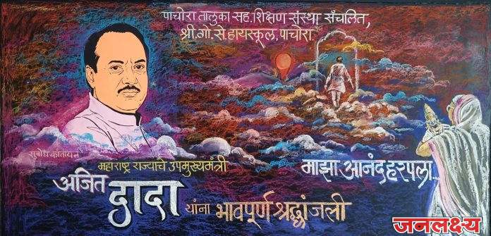 श्री गो. से. हायस्कूलच्या दर्शनी फलकावर स्व.अजित दादांना चित्रमय श्रद्धांजली “माझा आनंद हरपला”