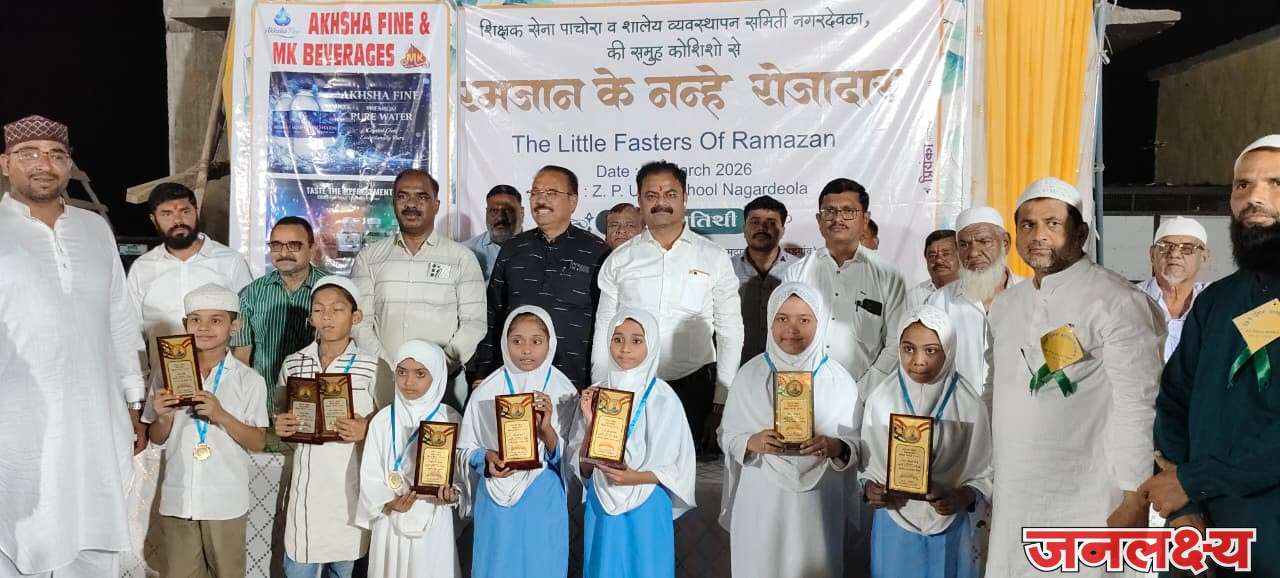 बाल रोजेदारांचा सत्कार: इयत्ता पहिली ते चौथीमध्ये शिकणाऱ्या अशा ३२ विद्यार्थी-विद्यार्थिनींचा, ज्यांनी रमजानचे सर्व उपवास पूर्ण केले होते, त्यांचा सत्कार आमदार किशोर आप्पा पाटील यांच्या हस्ते करण्यात आला.