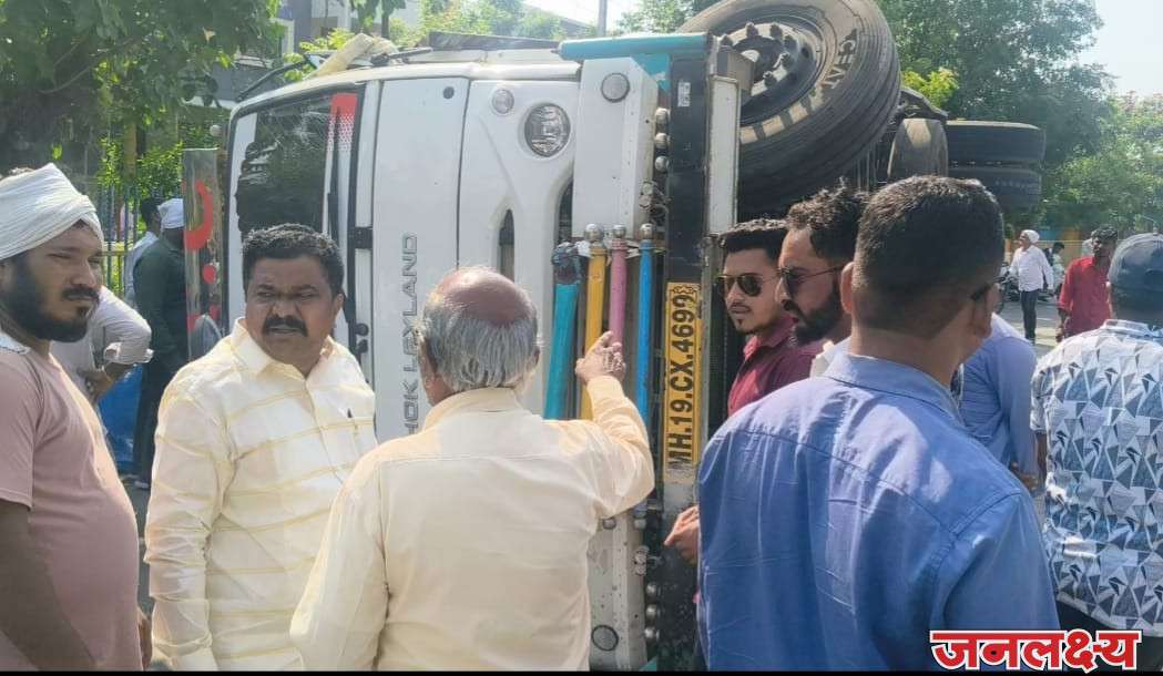 पाचोरा शहरातील बायपास वरुन आज दि. १९ रोजी दुपारी ११.३० ते १२ दरम्यान भडगाव कडुन पहुर कडे जाणारा ट्रक क्रमांक एमएच १९ सी एक्स ४६९९ अचानक विकास कॉलनी कडुन एक मोटरसायकलस्वार वाचायला गेला आणि ट्रक चा वेग जोरात असलेल्या डीव्हायडर असलेल्या पोल ला धडक देऊन ट्रक सामान सहीत विरुद्ध दिशेने जाउन पलटी झाला. ट्रक चालक राजु पाटील गाडीत होता त्याला तात्काळ पो. कॉ. दिपक पाटील यांनी वाचविले. चालक किरकोळ जखमी झाला आहे. यावेळी समोरुन येणारे दोघे मोटरसायकल वरील चौघे वाचले. घटनास्थळी तात्काळ कॉग्रेस तालुका अध्यक्ष सचिन सोमवंशी, पी एस पाटील यांनी भेट देऊन दुर्घटना ग्रस्त ट्रक ची पहाणी केली. ट्रक मध्ये अॉईल ने भरलेला होता. या अपघातात रस्त्यावरील इलेक्ट्रिक पोल चक्काचूर झाला. शहरातील बायपास वर जड वाहनांना हळु चालले पाहिजे असा सुर बघ्यांचा होता.