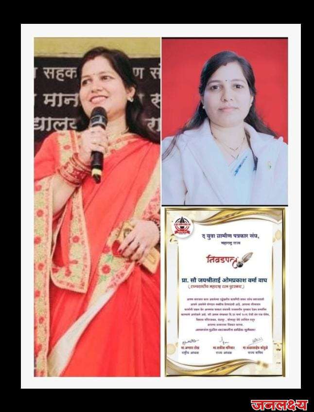 प्रा. सौ जयश्रीताई वर्मा वाघ यांना मिळालेल्या या सन्मानाबद्दल सर्व स्तरांतून त्यांचे अभिनंदन होत असून त्यांच्या पुढील वाटचालीस शुभेच्छा व्यक्त केल्या जात आहेत.