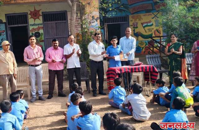येथील जिल्हा परिषद प्राथमिक शाळेत इयत्ता चौथी ते सातवीच्या विद्यार्थ्यांसाठी आयोजित करण्यात आलेल्या “आपला महाराष्ट्र सामान्य ज्ञान स्पर्धे” चा बक्षीस वितरण समारंभ शनिवारी उत्साहपूर्ण वातावरणात पार पडला. शाळा व्यवस्थापन समितीच्या (SMC) पदाधिकाऱ्यांच्या हस्ते गुणवंत विद्यार्थ्यांचा सन्मान करण्यात आला.