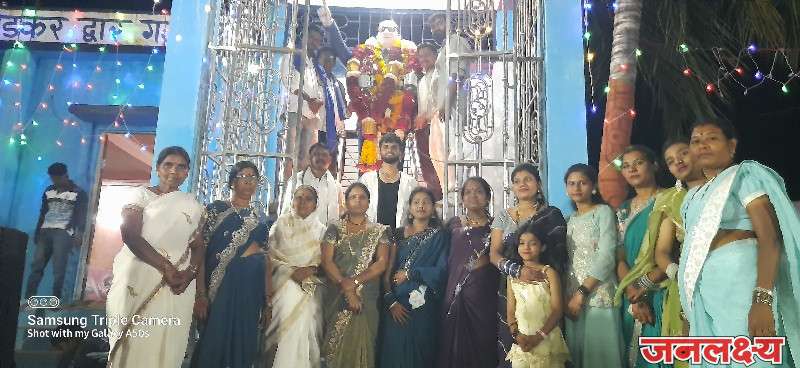 यानंतर सायंकाळी सहा वाजता शिवाजीनगर (प्लॉट) येथून जयंती मिरवणुकीला सुरुवात झाली. ‘जय भीम’च्या घोषणांनी परिसर दुमदुमून गेला. नाचत-गात, फटाक्यांच्या आतिषबाजीत गावात मिरवणूक काढण्यात आली. रात्री उशिरापर्यंत कार्यक्रम उत्साहात पार पडला. जयंती सोहळा शांततेत पार पडण्यासाठी पोलिसांचा कडेकोट बंदोबस्त ठेवण्यात आला होता.