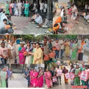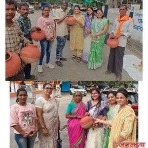 माठ व फळांचे वितरण सौ संगीता सिसोदिया जी , अन्नदान सौ छाया शशिकांत धुळेकर जी , कापडी पिशवी वितरण सौ. मोनिका अग्रवाल थेपडे जी , पशुपक्ष्यांसाठी पिण्याच्या हौदा सौ. राजश्री संदेश जैन जी यांच्या कडून करण्यात आले.