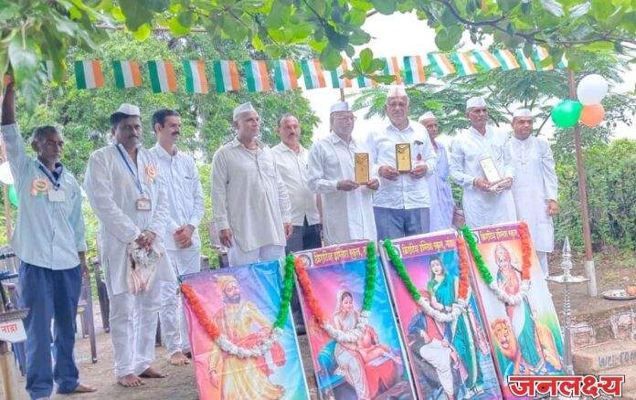 नांद्रा ता. पाचोरा ( प्रतिनिधी)- येथे 75 व्या स्वातंत्र्य अमृत महोत्सवानिमित्त दिनांक 6 ऑगस्ट ते 15 ऑगस्ट पर्यंत विविध कार्यक्रमांनी स्वातंत्र उत्सव साजरा करण्यात आला,15 ऑगस्ट रोजी माजी सैनिक आबासाहेब मन्साराम सूर्यवंशी यांच्या शुभहस्ते क्रिएटिव्ह स्कूल ला ध्वजारोहण कार्यक्रम संपन्न झाला याप्रसंगी 1942 च्या चलेजाव चळवळीत नांद्रा येथील तीन थोर स्वातंत्र्य सेनानी स्वर्गवासी लोटन सोनजी सूर्यवंशी, थोर स्वातंत्र्य सेनानी स्वर्गवासी माधवराव लाला सूर्यवंशी, थोर स्वातंत्र्य सेनानी स्वर्गवासी कपूरच्या नथमल मुथा यांनी सक्रिय सहभाग घेऊन इंग्रजांविरुद्ध लढा दिला होता त्यामुळे गावाचा सन्मान वाढला व त्यामुळे त्यांच्या कुटुंबाचा ही जाहीर सन्मान व्हावा म्हणून क्रिएटिव्ह स्कूल ला त्यांचे सुपुत्र अनुक्रमे विश्वनाथ लोटन सूर्यवंशी,पंडित माधवराव पाटील,लखीचंद कपूरचंद मुथा यांचा क्रिएटिव्ह स्कूल तर्फे प्रा. यशवंत पवार व ओम भाऊ पवार यांनी शाल,श्रीफळ,स्मृतीचिन्ह,मेडल देऊन त्यांचा गौरव करण्यात आला याप्रसंगी सरपंचपुत्र विनोद तावडे,उपसरपंच शिवाजी तावडे,ग्रामपंचायत सदस्य योगेश भाऊ सूर्यवंशी, विनोद आप्पा बाविस्कर,तंटामुक्ती अध्यक्ष सुभाष आप्पा बाविस्कर, पिंटू भाऊ बोरसे,स्वप्नील बाविस्कर, संदीप पाटील, भागवत गोसावी, बंटी सोनावणे,ओम भाऊ पवार,हिरालाल सूर्यवंशी,राजीव भाऊ पत्रकार,नामदेव पाटील, विजू पाटील,नवल पाटील सुधाकर पाटील हे उपस्थित होते याप्रसंगी विद्यार्थ्यांनी देशभक्तीपर विविध सांस्कृतिक कार्यक्रम साजरे केले व त्यानंतर विद्यार्थ्यांना प्रमाणपत्र वाटप कार्यक्रम संपन्न झाला कार्यक्रम यशस्वीतेसाठी नम्रता पवार,अरुंधती राजेंद्र वैशाली पाटील,जयश्री पाटील, श्वेता पाटील पूजा काळे श्वेता बोरसे,पूजा धोबी,सुभाष पिंपळे यांनी परिश्रम घेतले कार्यक्रमाचे सूत्रसंचालन शिक्षिका वृंद जयश्री पाटील व श्वेता पाटील तर प्रास्ताविक प्रा यशवंत पवार यांनी केले
