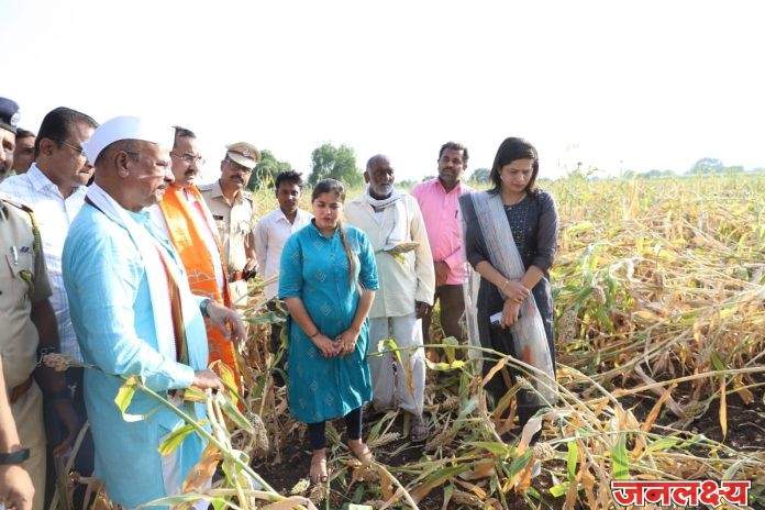 कु-हे, टाकरखेडा, भोज, एरंडोल आदि ठिकाणी थेट शेतकऱ्यांच्या बांधावर जाऊन कृषिमंत्री श्री. सत्तार यांनी आज पाहणी करुन शेतकऱ्यांच्या व्यथा जाणून घेतल्या.