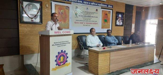 चोपडा: येथे राष्ट्रीय जनजाती आयोग, नवी दिल्ली व कवयित्री बहिणाबाई चौधरी उत्तर महाराष्ट्र विद्यापीठ, जळगाव, विद्यार्थी विकास विभाग तसेच महात्मा गांधी शिक्षण मंडळ संचलित, कला, शास्त्र व वाणिज्य महाविद्यालय, चोपडा यांच्या संयुक्त विद्यमाने ‘आदिवासी क्रांतिवीरांचे स्वातंत्र्यलढ्यातील योगदान’ या विषयावरील ‘पोस्टर प्रदर्शन’ व ‘व्याख्यान’ कार्यक्रमाचे आयोजन करण्यात आले होते.