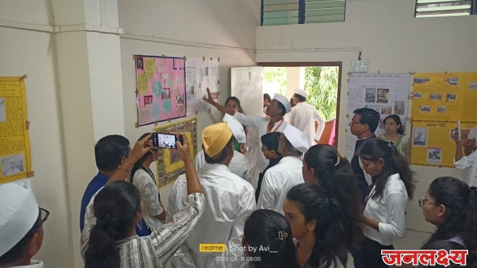 पाचोरा (प्रतिनिधी ) पाचोरा 15 ऑगस्ट 2023 रोजी भारतीय स्वातंत्र्याचा अमृत महोत्सव साजरा करताना श्री शेठ मुरलीधरजी मानसिंगका महाविद्यालयातील इतिहास विभागाच्या वतीने *स्वातंत्र्याच्या पाऊल खुणा* या विषयावर भारतीय स्वातंत्र्य चळवळीतील विविध घटना संबंधी 100 पोस्टर प्रदर्शित करण्यात आले यामध्ये परकीय सत्तेचे भारतातील आगमन प्लासी,बक्सार,1857 चा उठाव ते भारतीय राष्ट्रीय काँग्रेसची स्थापना मवाळ,जहाल गट,जालियनवाला बाग हत्याकांड,असहकार चळवळ,सायमन कमिशन,सविनय कायदेभंग चळवळ,म.गांधी आयर्विन करार, राजा राममोहन रॉय,म.ज्योतीबा फुले,सावित्रीबाई फुले,लो.टिळक,महात्मा गांधी,डॉ बाबासाहेब आंबेडकर पुणे करार,छोडो भारत चळवळ,क्रिप्स योजना,स्वातंत्रवीर वि.दा.सावरकर,शहीद भगतसिंग,सुखदेव,राजगुरू डॉ.बाबासाहेब आंबेडकर,पं.मोतीलाल नेहरू,पं.जवाहरलाल नेहरू डॉ.राजेंद्र प्रसाद,लाला लजपत राय,सरदार वल्लभभाई पटेल,बिर्सा मुंडा,बाबू गेणू,शिरीषकुमार ते भारतीय स्वातंत्र्यलढा आणि खानदेश,साने गुरुजी,डॉ उत्तमराव पाटील,लीलाताई पाटील साताऱ्याचे पत्रीसरकार क्रांतिसिंह नाना पाटील,लाला हरदयाळ अशा विविध सामाजिक राजकीय विचारवंत नेते क्रांतिकारक यांच्या जीवन चरित्र व कार्याचा आढावा पोस्टर प्रदर्शनातून मांडण्यात आला या कार्यक्रमाचे उद्घाटन पाचोरा तालुका सहकारी शिक्षण संस्थेचे व्हा.चेअरमन नानासाहेब व्ही.टी जोशी यांच्या हस्ते झाले कार्यक्रमासाठी पाचोरा तालुका सहकारी शिक्षण संस्थेचे अध्यक्ष मा.आ.भाऊसाहेब दिलीप वाघ तसेच संस्थेचे चेअरमन नानासाहेब संजय वाघ यांच्याही शुभेच्छा मिळाल्या कार्यक्रम प्रसंगी कनिष्ठ महाविद्यालय शालेय व्यवस्थापन समितीचे चेअरमन नानासाहेब सुरेश जी देवरे महाविद्यालयाचे सेवानिवृत्त प्राचार्य डॉ.बी एन पाटील प्राचार्य डॉ.शिरीष पाटील उपप्राचार्य डॉ.वासुदेव वले उपप्राचार्य डॉ.जे व्ही पाटील उपप्राचार्य प्रा.जी बी पाटील प्रा.राजेश मांडोळे प्रा.एस एस पाटील आदी उपस्थित होते या कार्यक्रमाची मूळ संकल्पना प्रा.डॉ.माणिक पाटील यांची होती तर यासाठी इतिहास विभाग प्रमुख प्रो.डॉ.जे.डी गोपाळ यांचे मार्गदर्शन लाभले यावेळी वरिष्ठ,कनिष्ठ व किमान कौशल्य विभागातील सर्व प्राध्यापक शिक्षक शिक्षकेतर कर्मचारी उपस्थित होते या कार्यक्रमासाठी प्रथम,द्वितीय तृतीय वर्ष इतिहास वर्गातील विद्यार्थ्यांनी मेहनत घेतली.