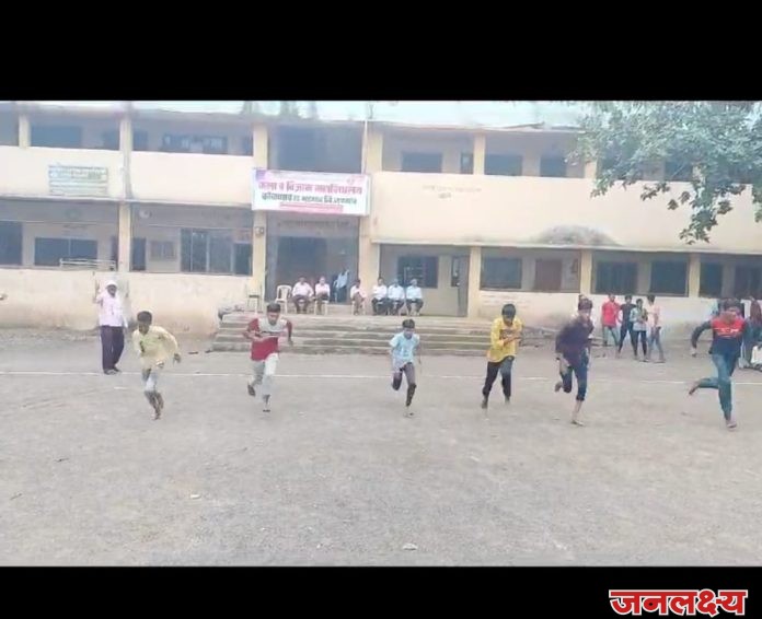 गो.पु .पाटील विद्यालय कोळगाव, येथे 100 मी. धावणे या स्पर्धेचे उद्घाटन